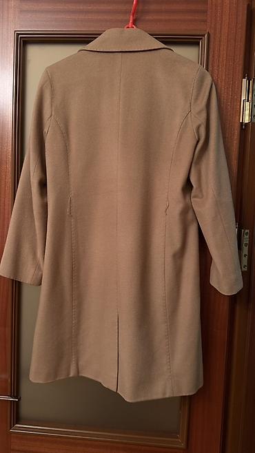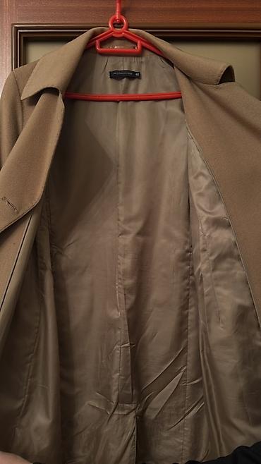 baha alınıb kəməridə var.Koton qadın palto - Rəng: bej - Ölçü: 34 (etiketdə göstərilib) - Model: ikiqat düyməli, klassik uzunsov kəsim - Material hissi: yumşaq üst parça, iç hissə romb naxışlı ste...