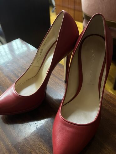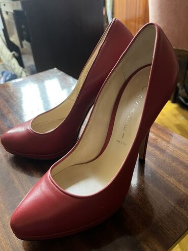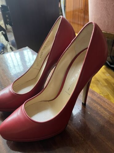 Qadın klassik tuflilər - Rəng: qara - Model: şıq, sivri burunlu klassik pumps - Topuq: nazik stilettо, təxminən 9–10 sm - Material: hamar parıltılı üst (sintetik/eko dəri tipli), iç hissəsi yastıq...