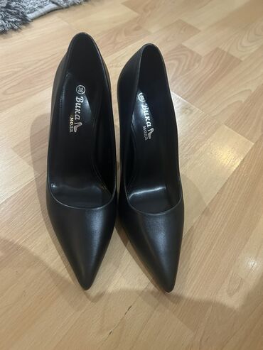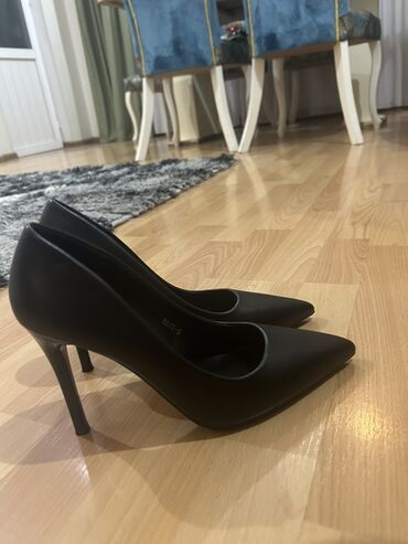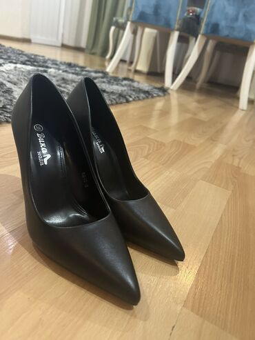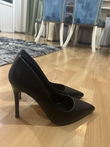 Qadın klassik tuflisi – qara rəngli, şıq və minimal dizayn. - Model: nazik hündür dabanlı (stiletto) - Daban hündürlüyü: təxminən 10–11 sm - Burun forması: uclu (pointed toe) - Material: hamar tek...