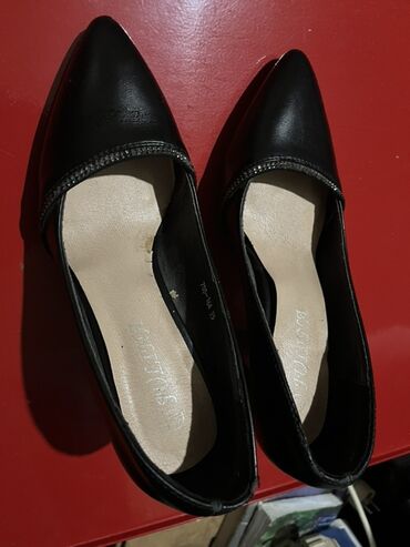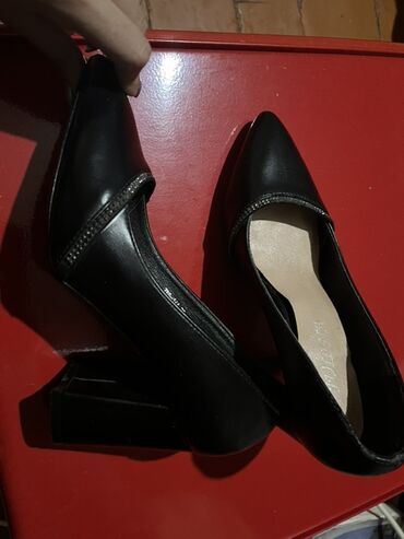 Qadın klassik tufliləri - Rəng: qara - Model: bağlı burun, dairəvi formalı - Dabandan: hündur və qalın (stabil blok daban) - Material: parıltılı, hamar səthli üst (süni dəriyə bənzər görünüş) - İç...