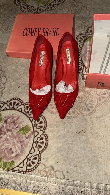 Qırmızı tünd rəngdə klassik qadın tuflisi - Brend etiketində: Sasha Fabiani - Material görünüşü: süet effektli üstlük, hamar içlik - Burun forması: iti/şpil burun - Dizayn: ön hissədə iri “V” forma...