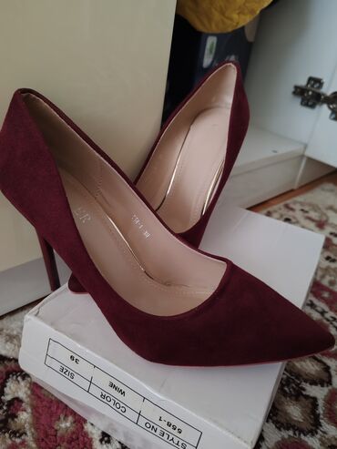 - Şəkildəki qutuda “STYLE NO: 588-1, COLOR: WINE, SIZE: 39” qeyd olunub.