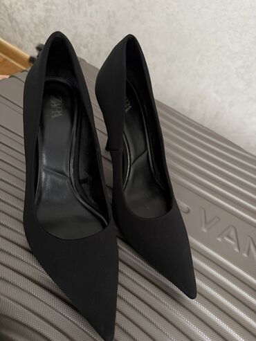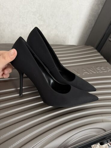 ZARA qara,ölcü, 36-37ye gedir,Türkiyeden sifarişle getirilib,ölcü düz gelmediyi ücün satılır, cemi bir defe geyinilib,qara lak,hündürlük 5 sm