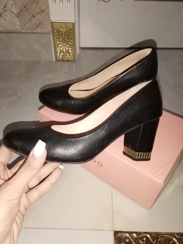 Qadın klassik tuflisi Zamish Zamish maldan cox ğözəldir cox ucuz сох cox 37-37,5 razmer Təzə - Rəng: qara - Burun: yumru - Dizayn: burun üstündə dekorativ bant/aksesuar - Daban: hündür bloka t...