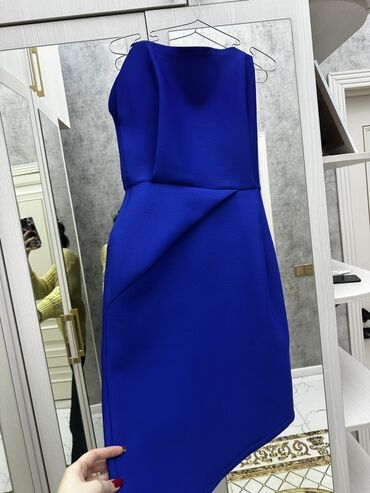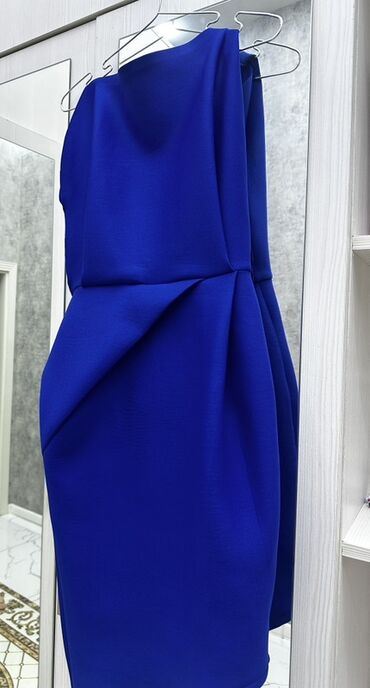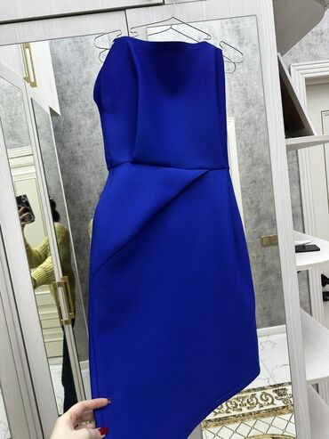 Brend: Marissa Bədən ölçüsü: 40 (etiketdə göstərilib) Rəng: Parlaq kral mavisi Model: Çiyinləri açıq, kəsimli və volantlı dizayn. Ön və arxa hissədə dekorativ büzgülər/qatlar var, qollar hissə...