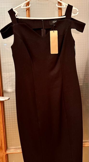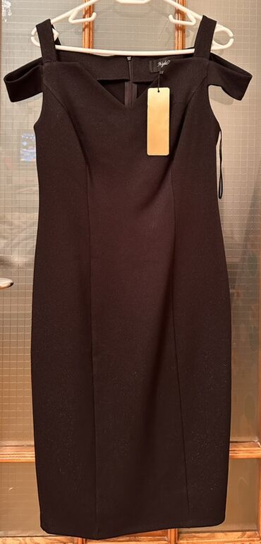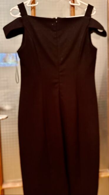 Alındıqdan sonra geyinilməyib, yenidir, 44 ölçü. Öz qiyməti göründüyü kimi 92 azndir Qara rəngli zərif qadın paltarı. - Dizayn: Karevi dekolte, yüngül qabarıq çiyinlər, 3/4 qol - Kəsim: Bədəni i...