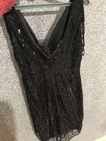 Detallar: daş/kristal bəzək, payet, boncuk, V-yaxa, qolsuz dizayn, qısa/knee-length kəsim