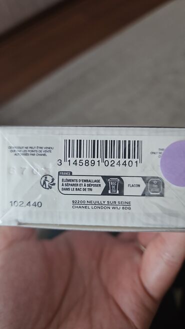 Qeyd: Şəkildə ayrıca qutunun altında “Chanel London W1J 6DG” yazılı barkodlu etiket görünür; bu paltarla əlaqəli aksesuar və ya ətir qutusuna aid ola bilər. Paltarın brendi KORPO-dur.
