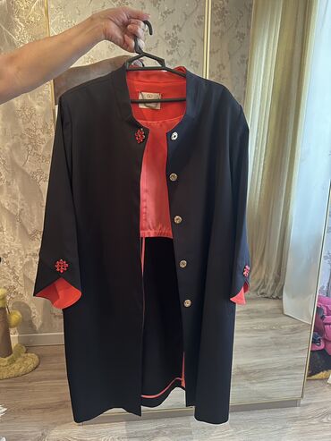 - Qollar: 3/4 uzunluq, iç qat qırmızı rəngli, manjetdə qırmızı bəzək broşu