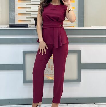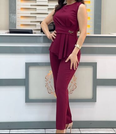 Qadın kostyum dəsti – şərab rəngi (bordo) - İkili dəst: qolçinli