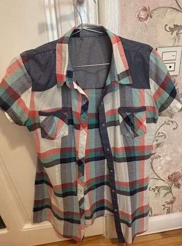 - Qısaqol rəngli xətli (çəkməli) köynək: çoxrəngli (mavi, yaşıl, qırmızı, krem) xanalı naxış, iki ön qapaqlı cib, düyməli ön hissə Rahat gündəlik istifadə üçün.