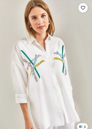 Ağ rəngli qadın köynəyi - Parça: fakturalı/teksturalı (yüngül, hava