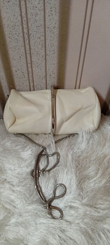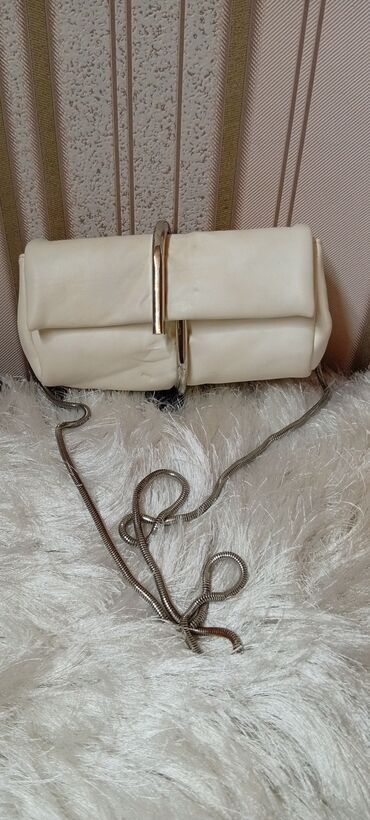 Ağ rəngli qadın çantası – zəncirli çiyin/çarpaz asma