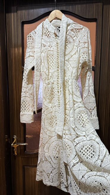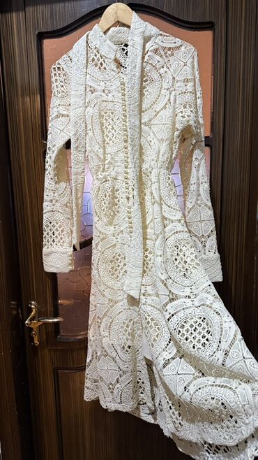 ZERA brendi qadın paltarı - Rəng: ag.. - Ölçü: M (etiketdə göstərilib) - Material: nazik, naxışlı və deşikli broderiya tipli parça; içlik qatlı hissələr mövcuddur.... - Dizayn: uzun qollu, manjetli...