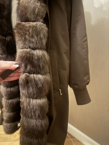 - Bəzək: Ön hissədə və kapüşonda iri, yumşaq tünd qəhvəyi kürk trimi (həcmli hissələr şəklində)