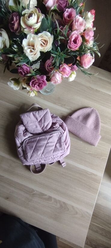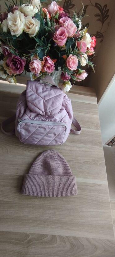 Yüngül və zərif dəst: açıq bənövşəyi mini çanta+ toxunma papaq. 5-6 yawa