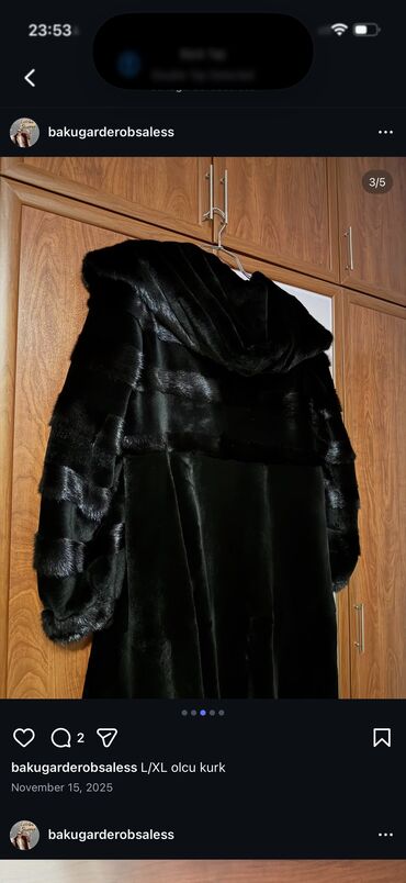 Təbii dəri kürk palto 2,3 dəfə istifadə edilib. Razmeri uyğun