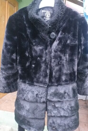 Qara rəngli qadın kürk paltosu - Klassik qısa-palto kəsimi, düz siluet - Yumşaq, sıx tüklü kürk fakturası; parlaq səth - Geniş, həcimli kürk yaxalıq – boynu yaxşı örtür - Öndə iri dekorativ düymə ...