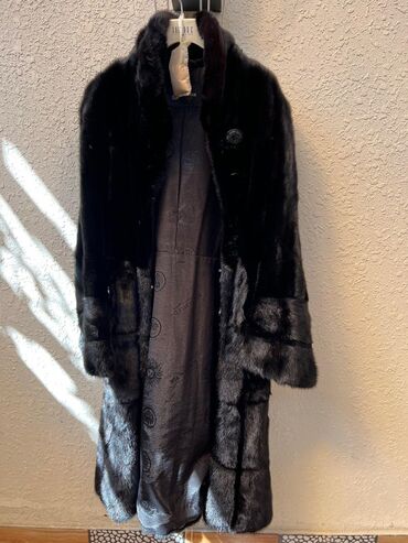 Qadın kürkü – tünd qəhvəyi/qaraya yaxın rəng, uzun modellidir. Xüsusiyyətlər: - Klassik düz kəsim, dizdən aşağı uzunluq - Yumşaq, sıx tüklü parlaq faktura - Geniş, qatlana bilən yaxalıq - Uzun qol...