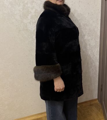 Çox az 2-3 dəfə geyilib.Təzəkimidi.Qara rəng,qolları,boynu boz mexdi,uzunluğu dizdən bir az aşağıdı.İsti,yup yumşaq kürkdü.