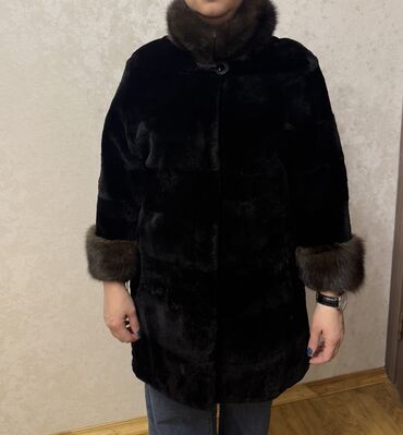 Qadın üçün uzun kürk-palto. Təbii dəri və xəz. 5-6 defe geyinib. -