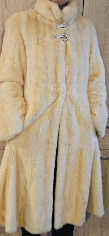 Zərif krem rəngində uzun xəz palto