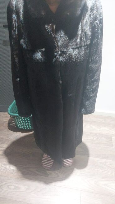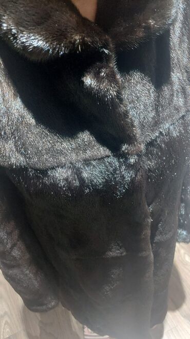 Boyuk beden 48 -50 Qadın kürkü – tünd qəhvəyi/qartal qarası tonlarda, klassik uzun kəsim. Xüsusiyyətlər: - Material: təbii xəz (mink görünüşlü), sıx və parlaq tüklü tekstura - Model: uzun palto t...