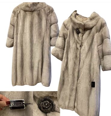 Brend: KRISTINA Məhsul: Təbii kürk palto Az geyinilib - Rəng: Açıq bej–boz tonlarda, zolaqlı panellərlə - Uzunluq: Dizdən aşağı (klassik uzunluq) - Qol: 3/4 uzunluqda - Yaxa: Geniş və yumşaq şal ya...