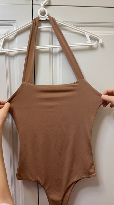 Bej rəngli qısa top (korset üslubunda) - Material: cins/denim tipli parça, iç hissədə elastik smock tikiş (belə uyğun oturur) - Model: qalın, tənzimlənə bilən qayışlar (snaps düymələrlə iki mövqed...