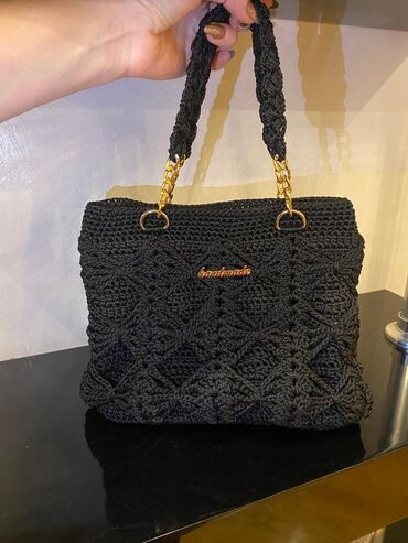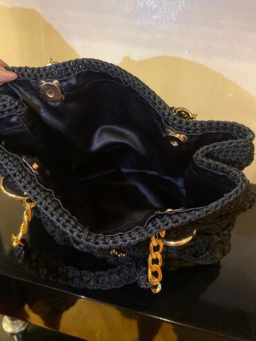 Qara rəngdə əl işi toxunma çanta 50₼ deyil 40₼, təcili pul lazım olduğu üçün endirimdədir. çatdırılma var - Material: qalın toxunma sap, möhkəm formaya malikdir - Armatur: qızılı rəngli metal kili...