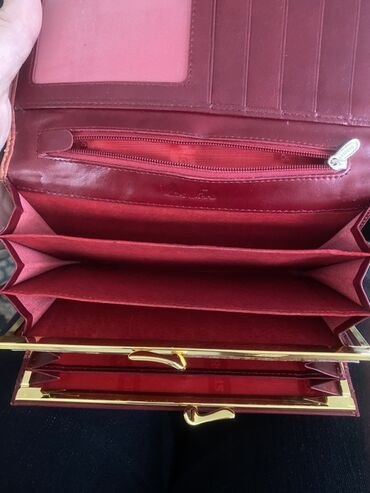 Aksesuar dəsti – müxtəlif çanta və cüzdanlar - Qırmızı, kroko naxışlı fermuarlı pul kisəsi: qolbağlı qayışı var, içi çox bölməli. - Turkuaz rəngli kart/şəxsiyyət vəsiqəsi üz qabı: kənarında püskül...