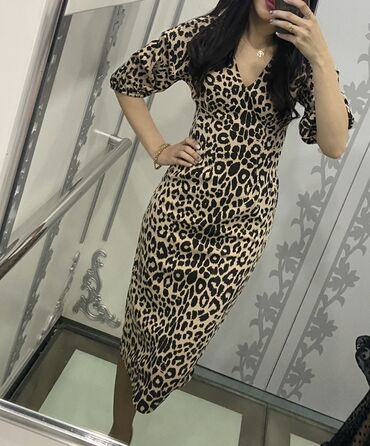 Leopar naxışlı qadın donu - Stil: bədənə oturan, midi uzunluq -