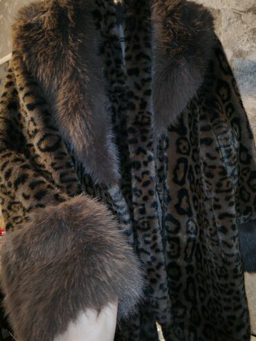 Leopar naxışlı kürk palto - Material: sıx, yumşaq tüklü kürk teksturası - Rəng və dizayn: qəhvəyi-qara tonlarda leopar printi, parlaq tekstura - Yaxa: iri və həcmli tüklü yaxa, boynu yaxşı örtür -...