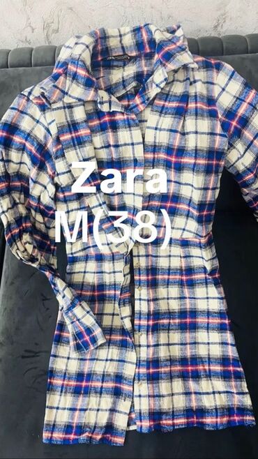 ZARA qadın paltarı – köynək tipli model - Rəng: tünd şabalıdı/bordo - Material: yüngül, teksturalı parça - Dizayn: qısaqol, klassik yaxalıq, ön hissədə düyməli bağlanma - İki ədəd döş cibinə malikd...