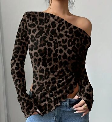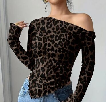 Qadın bluz – çiyinləri açıq, leopard naxışlı - Rəng: əsas hissə qara, yuxarı bənddə krem fon üzərində qəhvəyi-qara leopard printi Yenidir etiket üzerinde s razmer trendyoldan alinib uygun olmadığı...