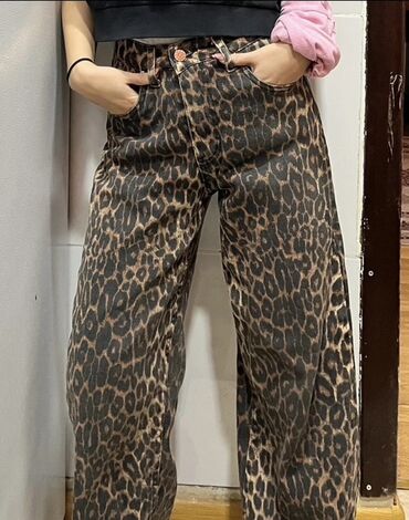 Leopard naxışlı geniş kəsimli cins şalvar Uzlaşma ola biler 45ə