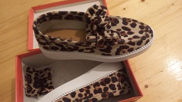 Leopar naxışlı qadın slip-on ayaqqabılar - Üst material: yumşaq parçadan, leopar printi - Dizayn: üst hissədə dekorativ bant/qurşaq düyünü - Rəng: bej fon üzərində tünd qəhvəyi/qaramativ ləkəli na...