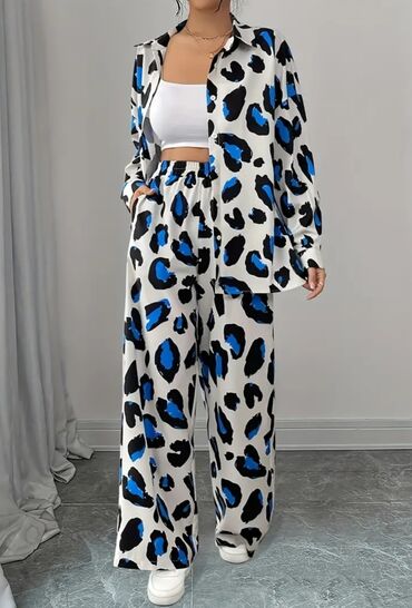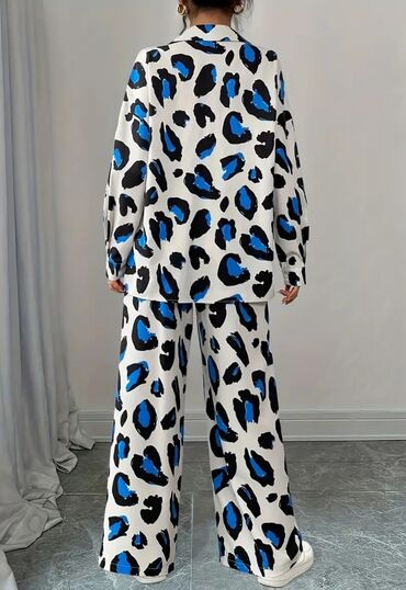 - Dizayn: Ağ fon üzərində iri mavi-qara leopard printi