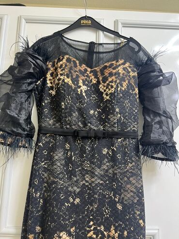 Qadın libas paltarı M razmer - Rənglər: qara və qızılı - Bel: ikiqat