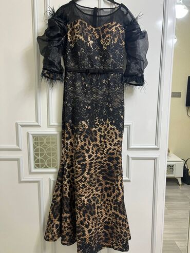 Leopard naxışlı uzun ziyafət donu - Bədənin hər xəttini vurğulayan dar siluet, bel hissəsində yığma-drapirovka detalları - Ön hissədə buda qədər çıxan yarıq – rahat hərəkət və zərif görünüş üçün -...