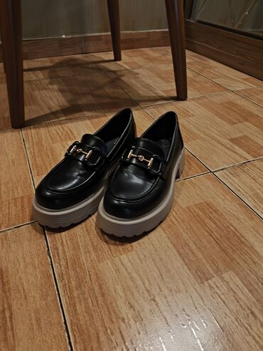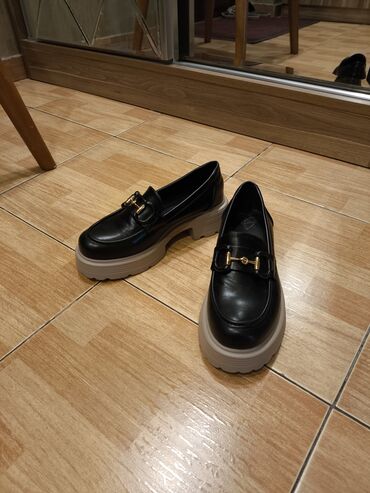 Dəri tərkibli materialdan hazırlanmış, hər iki cins üçün uyğun qara rəngli loaferlər. Klassik dizaynı ilə casual geyimlərlə uyğunlaşır. Ön hissədə metal detallı dekorativ lent mövcuddur. Gündəlik i...