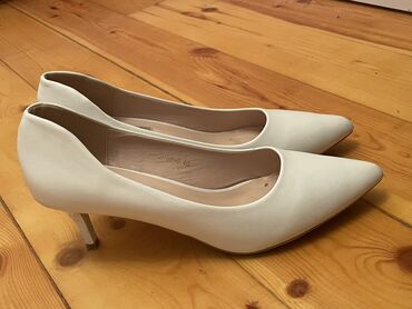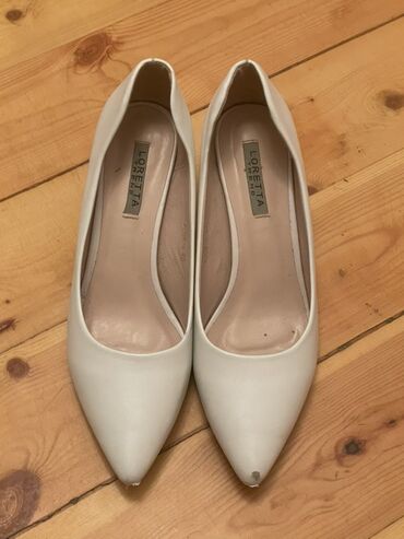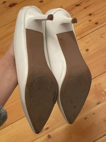 Uzun zamandı geyinilmir normal veziyyetdedir. Ağ rəngli klassik qadın tuflisi - Model: sivri burun, qapalı üzlü - Rəng: qar bəyaz - Topuq: nazik stilet, təxminən 10–11 sm - Material: hamar tekstura...