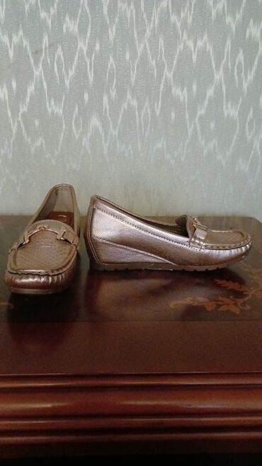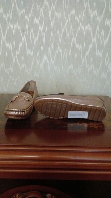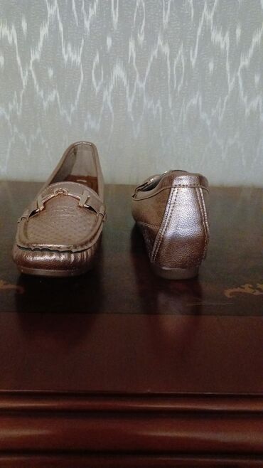 - Model: klassik mokasin, üst hissədə qızılı rəngli dekorativ metal aksesuar