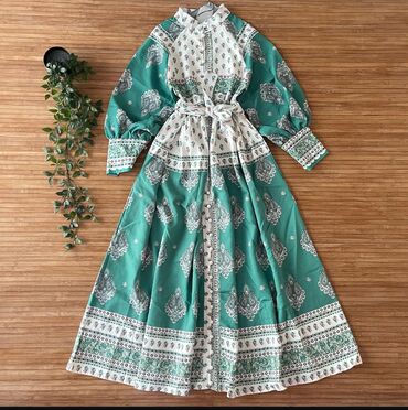 Yaz-payız mövsümü üçün zərif maxi don. Gündəlik və Ziyafət üçün çox rahat dondu. - Rəng: açıq yaşıl fon üzərində tünd yaşıl naxışlı (abstrakt/animal print effekti) - Parça: yüngül, axıcı şifon eff...