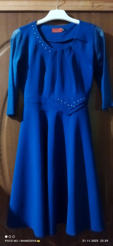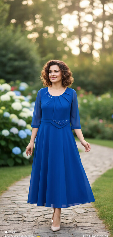 Gündəlik və ya xüsusi günlər üçün uyğundur; ətəyin yayvan kəsimi rahat hərəkət imkanı verir, zərif daşlar isə şık görünüş qatır. Kənar hissəsi zamokludur. Diz boyudur uzunluq. yarım qol. XS ölçüdür