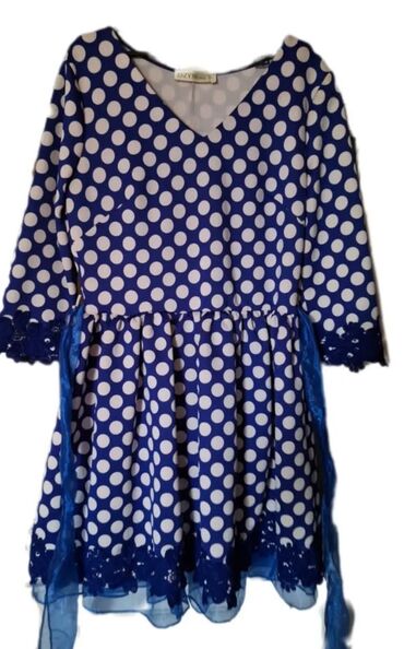 Mavi rəngli zərif qız uşaq paltarı - Material: şifon/tül üst qat, nazik astar - Dizayn: sinə hissəsində ağ krujeva aplikasiyalar və zolaqlı dekor, dairəvi yaxa - Qol: 1/2 uzunluqda şifon qollar, u...