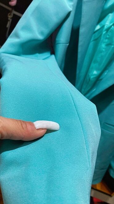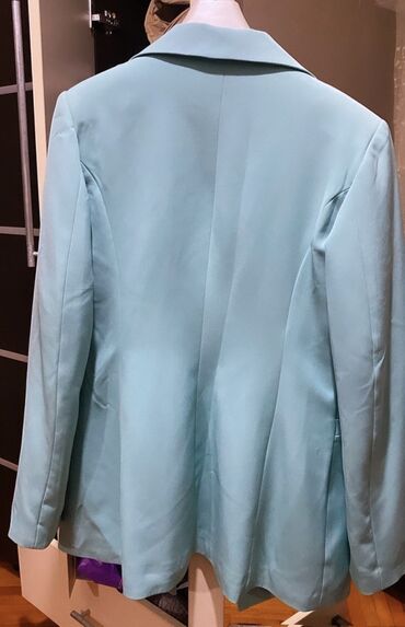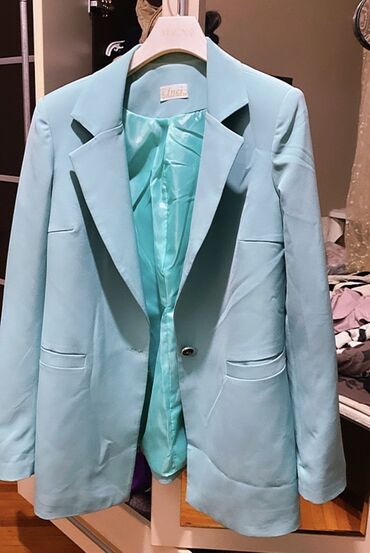 Qadın üçün mavi-aqua rəngdə klassik blazer