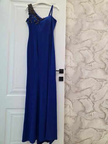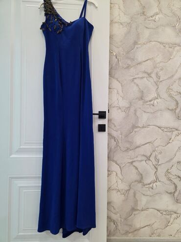 Mavi uzun ziyafət donu - Model: asimmetrik bir çiyinli - Rəng: dərin