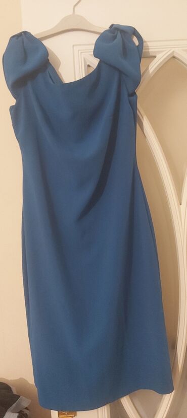 Mavi rəngli qadın donu - Stil: Zərif və minimal dizayn, drapeli ön