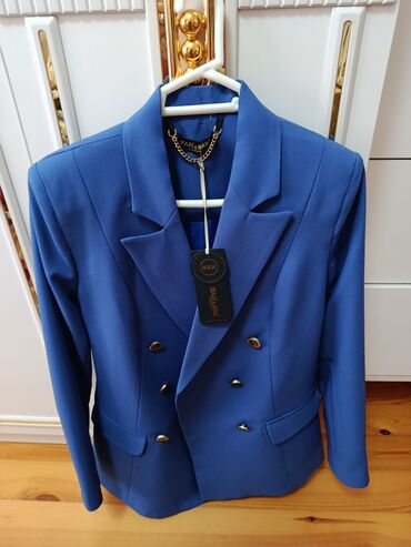 - Qızılı zəncirli asqı və istehsalçı etiketi bleizerin daxilində